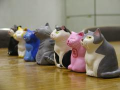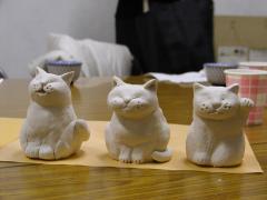 第3回目作品(2002.02.16) 今回は、2002年2月、2回にわたって開催された「粘土で猫を作る」の 講座に参加。先生は、ねこ丼でもご紹介させて頂いている高橋理佐さん。 勢い勇んで参加した第1回目は、粘土こねこねカタチ作り。 頭では分かっているもののカタチにするって難しいですね(^^ゞ 改めて、自分の不器用さに打ちのめされたのでありました。