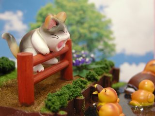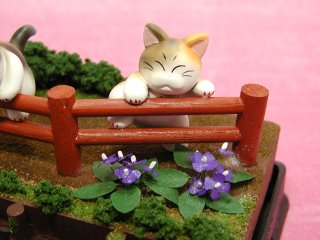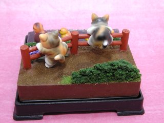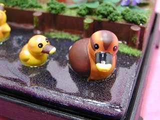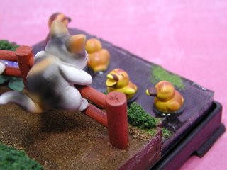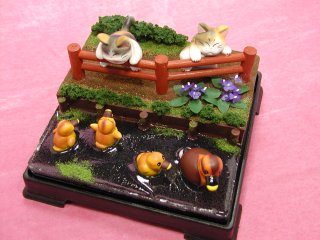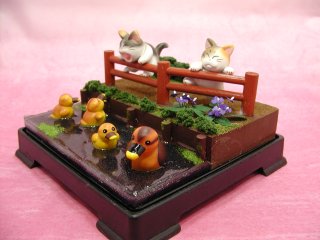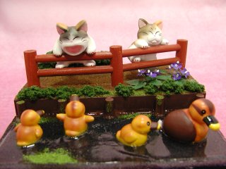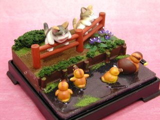2010年12月 カルガモ親子とねこさんのジオラマ。