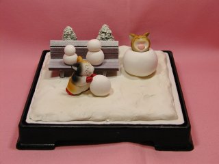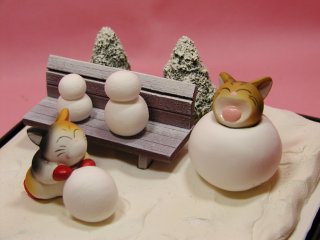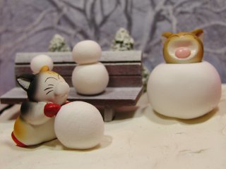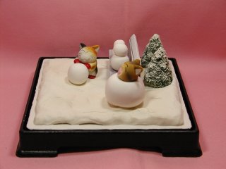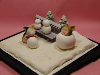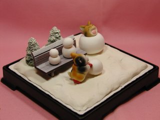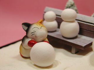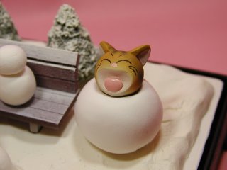 雪の中で楽しく遊ぶ丼ねこさんたち。