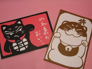 切り絵 2008年6月に東京谷中ギャラリー猫町で開催された松風直美さんの個展「猫町」 で体験させて頂いた切り絵です。右がねこ丼@旦那さん作、左がねこ丼作。 年々上手になる丁寧な旦那さん。毎年相変わらずのがさつな私σ(^◇^;) ほんと、性格でますねぇ〜。ふぅ。。。