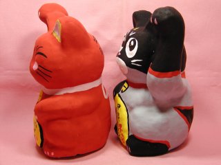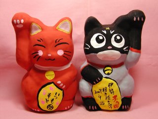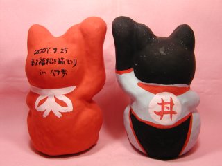 張り子絵付け 2007年9月に三重県伊勢で開催された招き猫まつりで 体験させて頂いた張り子絵付けです。右がねこ丼@旦那さん作、左がねこ丼作。