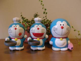 どらえもん これは、ゲームセンターのUFOキャッチャーの景品です。 左の二つはキッチンタイマー、右のは掃除機になっています。 キッチンタイマーはフライパンの中のお肉をうまい具合にひっくり返すのですが、 これが結構笑えます。 ただし、キッチンタイマーとしては、あまり役に立たないかも。 信用すると痛い目に遭います。
