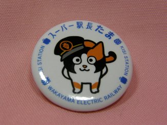 駅長たま缶バッチ 瀬戸の招き猫まつりから連れ帰った招き猫さんです。 一躍有名になった和歌山電鐵貴志川線貴志川駅のスーパー駅長たまの缶バッチ。