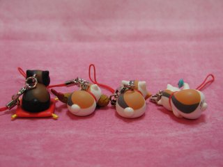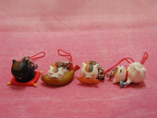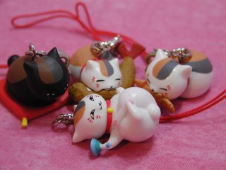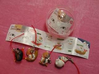 夏目友人帳にゃんこ先生ガチャポンストラップ 緑川ゆきさんの「夏目友人帳」に登場するにゃんこ先生のストラップ。 2010年5月のガチャポン。全5種類の4種類。