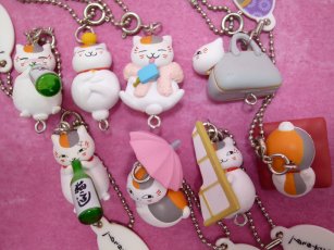 夏目友人帳にゃんこ先生徒然根付けストラップ 2012年2月にタカラトミーアーツから発売された「夏目友人帳にゃんこ先生徒然根付けストラップ」。 「みかんとニャンコ先生」、「エビフライとニャンコ先生」、「アイスとニャンコ先生」 「雨の日のニャンコ先生」、「ついてきたニャンコ先生」、「くつろぐニャンコ先生」 「のぞくニャンコ先生」、「お酒大好きニャンコ先生」、「酔ってきたニャンコ先生」の全9種。