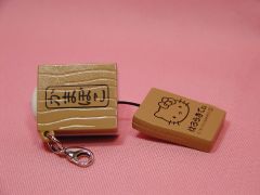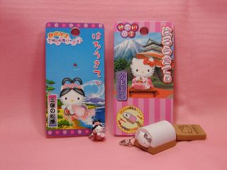 地域限定キティちゃん 静岡限定、三保の松原キティちゃんと、 神奈川県限定、かまぼこキティちゃんです。 かまぼこキティちゃんは、おしりのひもを引っ張ると 型抜きされたキティちゃんが出てくる仕組みになっています。