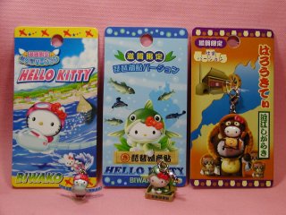 地域限定キティちゃん 2005年5月に滋賀県へ遠征した際に高速サービスエリアで ゲットした地域限定キティちゃんたちです。 滋賀県限定、鳥人間キティちゃん、鮎キティちゃん、しがらきたぬきキティちゃん。