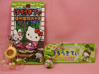 長野県限定キティちゃん 滋賀県で開催されたヘムスロイド村祭りの帰り道に連れ帰ったキティちゃん。 おやきキティちゃんと、わさびキティちゃん。 おやきキティちゃんもなかなかぶっ飛んでるけど、わさびキティちゃんの後ろ姿は。。。\(◎o◎)/!