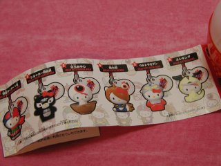 がちゃぽんキティちゃん キティちゃんと人気キャラクターのコラボ。 フルコンプしたかったけど、アッという間に無くなってしまいました。人気だったのかな? 仮面ライダーバージョンはゲットしたかった。。。(^^ゞ そう言えば、かなり前に「サザエぼん」っていうのもありましたな。