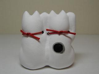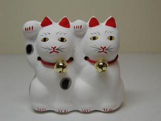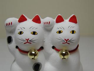 今戸神社招き猫さん 「にゃんこ訪ねて三千里」でレポ〜トしている「今戸神社」の招き猫さんです。 今戸神社の招き猫さんは、形、大きさともにこの1種類のみ。 縁結びにご利益があるそうです。 表情はキツネぽいかな?