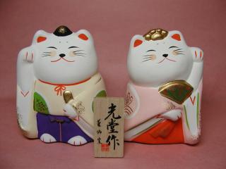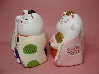 招き猫雛 2002年3月のお誕生日にお友達ようえいさん、さちこさんご夫婦が プレゼントして下さった招き猫さんのお雛様です。 ありがと〜ございますぅ(≧∇≦) お雛様の冠がネコさんの手みたいになっているとこがかわいい(=^m^=)