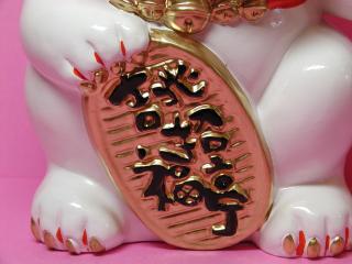 吉兆招福亭招き猫 伊勢のおかげ横町内にある吉兆招福亭さんオリジナルの招き猫さん。 プクプクのお顔とクリクリお目目、大きな手が特徴でしょうか。 かわいいけど、甘くなり過ぎない、ねこ丼お気に入りの招き猫さんです。 白の他にも黒、赤、ピンク、黄色など、いろいろありました。