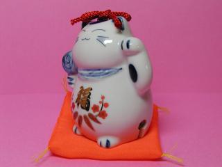 福寿の鈴招き猫 お腹の中に鈴が入っていて、振るとチリチリンとかわいい音がします。 ねこ丼お好みの横広プクプクのお顔は、いかにも福を招いてくれそう(^.^)v