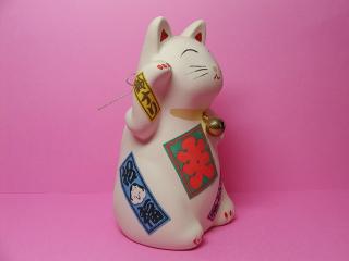 大入招き猫 ちょっと背の高い招き猫さんに縁起の良いシ〜ルが貼ってあります。 ちょっと手抜き?(*^m^*)なんて思いながらも、かわいいから許しちゃう(o^^o) お蕎麦屋招き猫さんで有名な常滑から連れ帰りました。