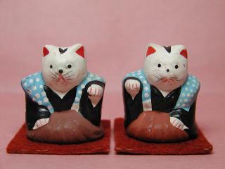 住吉大社招き猫 大阪住吉神社「楠くん社」で、毎月初辰の日に授与される招き猫さんです。 通称「はったつさん」。羽織袴姿のかわいい招き猫さんです。 奇数月には右手挙げ、偶数月には左手挙げのネコさんが授与されます。 4年間毎月欠かさず通って全48体を集めれば「始終発達」とか。。。