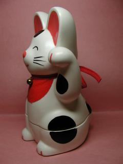 印鑑入れ招き猫さん 招き猫さんをパカッっと開けると印鑑が入るようになっています。 かなり大きめの招き猫さんなので存在感があります。 ウサギのような大きめの耳も印象的(o^^o)