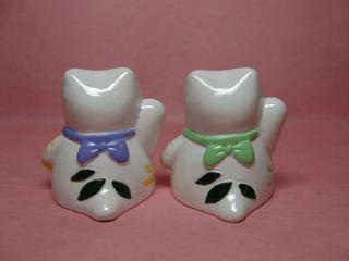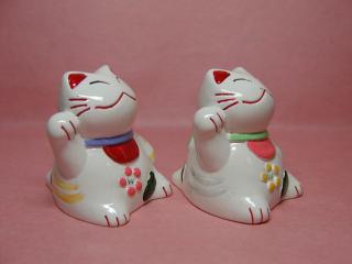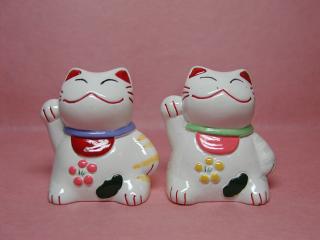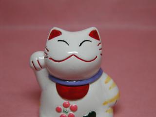 松竹梅招き猫さん おめでたい松竹梅がお腹と背中に描かれた招き猫さん。 上向き加減、お顔一杯のにっこり顔は、まさに運気上昇って感じ(o^^o)