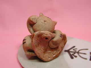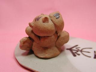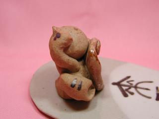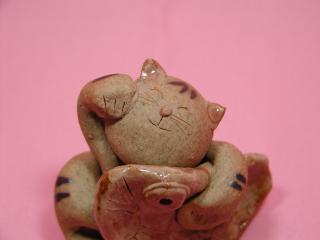 焼き物招き猫さん 某デパ〜トの催事場で出会った招き猫さんです。 かわいいお顔に一目惚れして連れ帰りました。 たぶん、作家さんかどこかの窯元さんの作品だと思うのですが。。。(^^ゞ