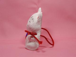 お面招き猫さん たぶん(^^ゞお面仕様の張り子の招き猫さん。 ヒモが付いているってことは、やっぱお面ですよねぇ。。。 でも、10cmほどの大きさなのです。猫さん用?(=^m^=)