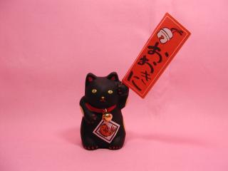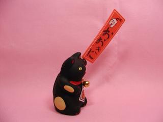旗持ち招き猫さん 愛知県常滑にある「ヤマタネ」から連れ帰った招き猫さん。 「おおきに」「まいど」と書かれた旗を持っています。 お腹には鯛シ〜ル。