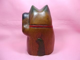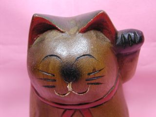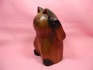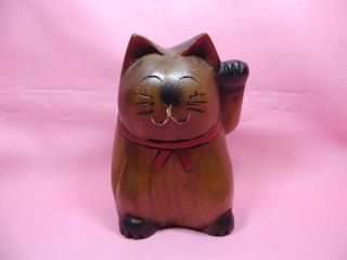 タイ招き猫さん アジアン雑貨のお店で出会った木彫りの招き猫さん。 お店の棚の隅の方から微笑みかけてきました(^^ゞ