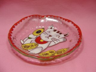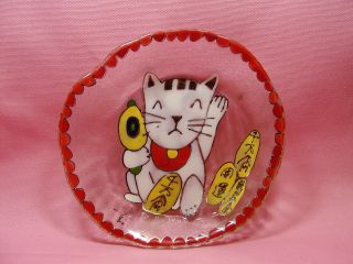 ガラスの招き猫さん 2003年4月に開催されたア〜トフリマから連れ帰った招き猫さんです。 ガラスのお皿も手作り。
