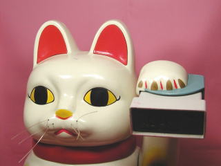 シャシハタの招き猫さん スタンプメ〜カ〜「シャシハタ」の販促品の招き猫さんです。 「招福+ニキュ〜」のスタンプを持っています。 手が上下に動くようになっていて、ちゃんとスタンプしてくれます。 ネッ友ロビママさんから譲って頂きました。感謝っ(*^^)v