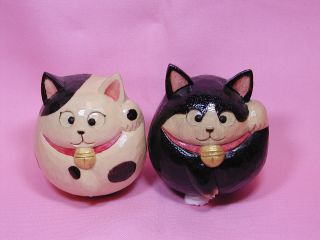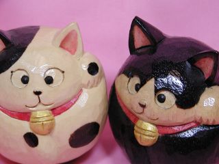 だるま招き猫さん ねこ丼母から茨城旅行のお土産に貰った招き猫さん。 木彫りです。コロコロしててかわいいけど安定感が無い(^^ゞ