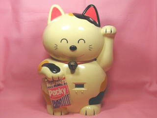 ポッキ〜招き猫さん 以前、骨董市で出会って、ず〜っと気になっていたポッキ〜を 持った招き猫さん。ご縁があってゲットしました(*^^)v