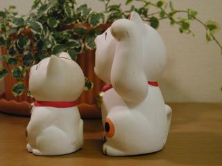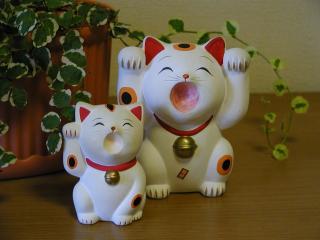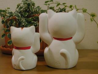 両手上げ招き猫 福を2倍招いてくれそうな両手を上げた招き猫です。 見方によっては、お手上げ状態ってかんじもしないでもありませんが・・・。
