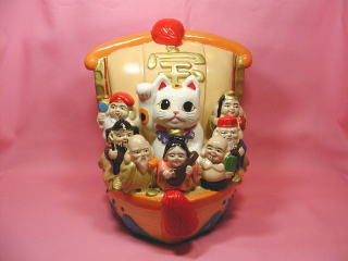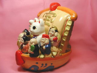 おめでたい七福神さん達と宝船に乗った招き猫さん。