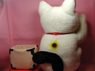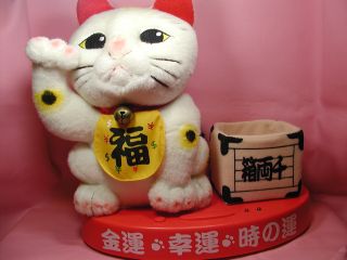 携帯ホルダ〜招き猫さん 携帯をしっかり預かってくれる招き猫さんです。 招き猫さんの横の千両箱の中に携帯を入れます。 着信があると「笑点のテ〜マ」が流れ、招き猫さんが踊って教えてくれます。