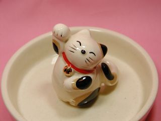 招き猫さん灰皿 弟夫婦からプレゼントして貰った招き猫さん。 灰皿ですが、招き猫さんの招いてる手がちょうど指輪を 掛けられるのでリングホルダ〜&アクセサリ〜入れとして使ってます。