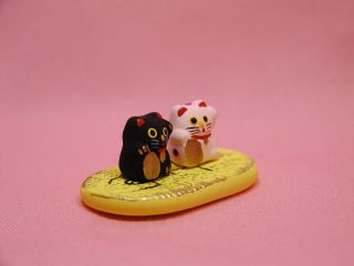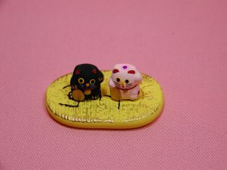 小判乗り招き猫さん 招き猫さん自体は身長1cmも無い豆豆招き猫さん。 「千両」と書かれた小判の上に乗っています。