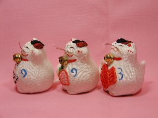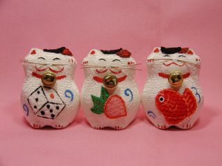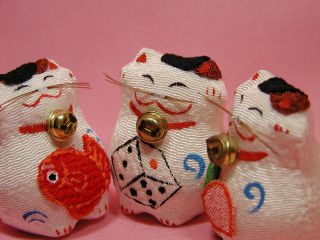 ちりめん招き猫さん お腹に縁起物を従えた両手上げの招き猫さん。 長めのしっぽがかわいいです(=^m^=)