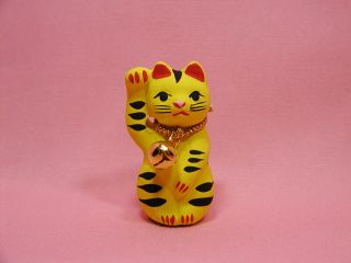 トラ招き猫さん 2003年はトラフィ〜バ〜でした(=^m^=) それでかな?黄色に黒のトラ柄の招き猫さん。