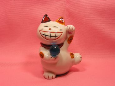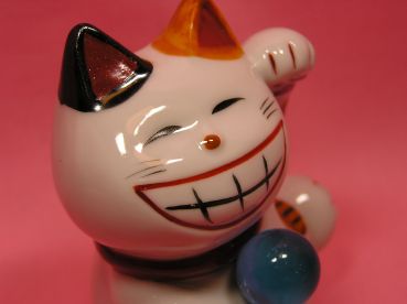 風水玉招き猫 にかぁ〜っとしたお顔で元気良く福を招いてくれそうな招き猫さん。 ちょっとお笑い系(=^m^=)
