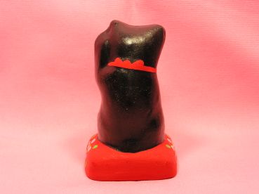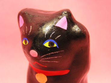 津屋崎人形 創業は明和5年(約230年前)。最初はロクロを用い火消壷、カメ等の生活必需品を製造。 その後次第に庶民の生活に結びついた素朴な人形、動物類(十二支等)を 製作するに至り、土地柄、農山漁村に関する型が多く、牛乗天神、ふくろう笛、 ハト笛、鯛笛、はだかの童子、土鈴等を製作。江戸末期より明治初期にかけて 本州及び四国方面へ船で大量出荷していた。初代、半兵衛以来、代々「半」を名乗り、 現在六代目。原田半蔵人形店(津屋崎人形由来書より)