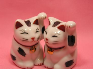 きつね顔の招き猫さん 瀬戸の焼き物屋さんのレジ横にちょこんと飾られていた招き猫さん。 何だか目があって連れ帰ってしまいました(=^m^=)