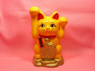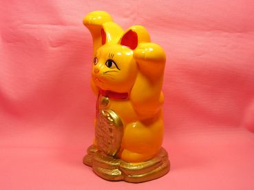 小判乗り招き猫さん 沢山の小判の上に乗った招き猫さん。 微妙な両手上げですが、右手重視のお金招き(=^m^=) 瀬戸の瀬戸物屋さんから連れ帰りました。
