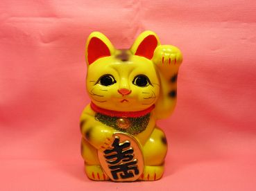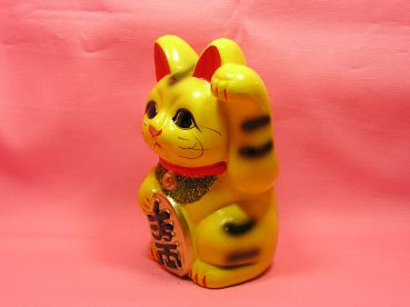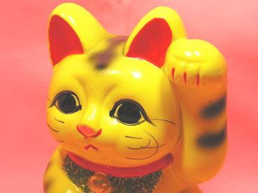 トラ招き猫さん 2003年はトラちゃん大活躍の年でした(=^m^=) と言うことで、招き猫さんもトラちゃん柄が人気でした。 この招き猫さんは、焼き物屋さんのプレゼント品。