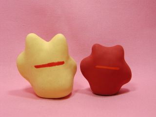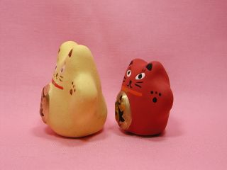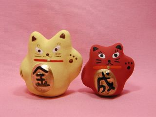 黄色の金運「金」の招き猫さんと赤い招き猫さん「成」。