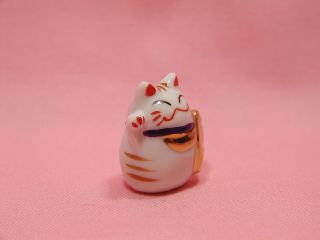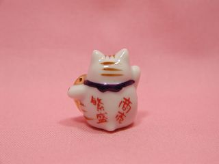 小判抱え招き猫さん 身長1.5cmほどの小さ〜い招き猫さん。 大きな小判を抱え、お金を招くと言われている右手挙げ。 背中には「商売繁盛」の文字入り。
