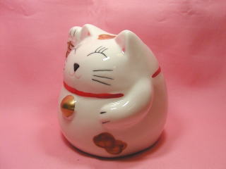 100円ショップ招き猫さん 100円均一のお店で見つけた招き猫さん。 まん丸な体つきは、いかにも福々しい(o^^o) でも「大吉」ではなく「吉」ってところが奥ゆかしい。。。かな?