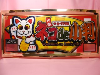 スロットプレート アッという間にパチンコ屋さんから無くなってしまった(^^ゞ 「ネコde小判」というスロット機のプレートです。 リプレイ子役がくると「1枚だにゃっ」「2枚だにゃっ」と言ってました(=^m^=) ビックボーナス中の曲は「ねこふんじゃった」。 あまり大当たりはしなかったけどf(^ー^;私にとっては名機かなぁ〜。