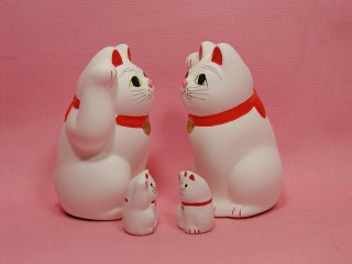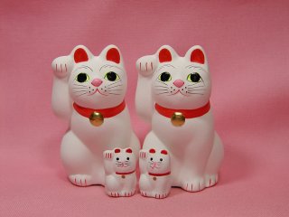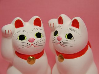 豪徳寺招き猫さん 招き猫発祥の地のひとつとされている豪徳寺の招き猫さん。 お寺で招き猫さんをお招きして、願いが叶ったらお寺にお返しします。 豪徳寺にはお役目を果たした招き猫さん達が奉納されている棚があり、 いつも沢山の招き猫さんでひしめき合っています。