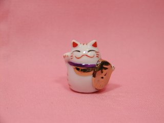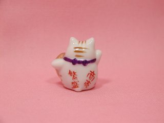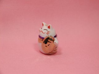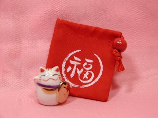 招き猫さんお守り 身長1cmあまりの小さな小さな招き猫さん。 これまた小さな赤い巾着付きで、招き猫さんを中に入れて お守りとして持ち歩けるようになっています。