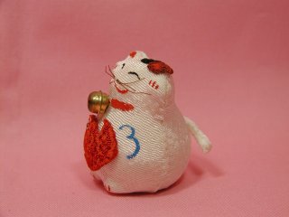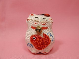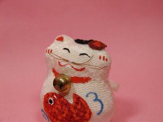 縮緬招き猫さん 縮緬で作られた両手上げの招き猫さん。 お腹の真っ赤な鯛がおめでたい感じ?(=^m^=)