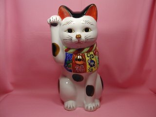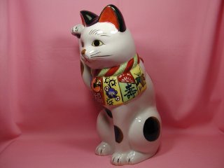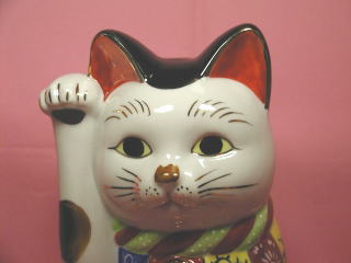 古瀬戸招き猫さん 「日本招猫倶楽部」から2004年に復刻、限定発売された招き猫さんです。 茨城県内のある旧家から出た九谷風の模様入りの前掛けをした古瀬戸招き猫さんがモデル。 スッとすたお姿が愛らしい細身の招き猫さんです。