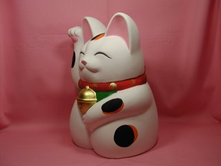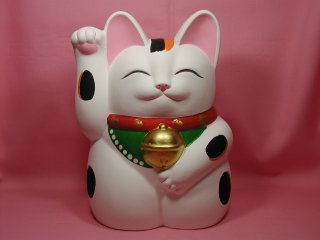 金運来福 萬助猫さん 愛知県常滑にある常滑焼のお店「ヤマタネ」オリジナルの招き猫さん。 この道50年の原型師、伊奈武八さんデザイン。 制作は常滑焼「冨本人形園」職人さんの手描き。 穏やかなお顔に大きな鈴、ふくよかな身体。幸せ〜な感じが伝わってきます。
